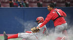 [OSEN=고척, 곽영래 기자] 6일 오후 서울 고척스카이돔에서 '2019 세계야구소프트볼연맹(WBSC) 프리미어12' 예선 C조 캐나다와 쿠바의 경기가 열렸다.9회초 1사 만루 캐나다 달톤 폼페이가 조나단 말로의 중견수 뜬공때 홈으로 쇄도해