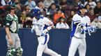 [OSEN=고척, 지형준 기자] 6일 오후 서울 고척스카이돔에서 '2019 세계야구소프트볼연맹(WBSC) 프리미어12' 예선 C조 대한민국과 호주의 경기가 열렸다.6회말 한국 김경문 감독이 2사 1,2루에서 허경민의 적시타에 홈을 밟은 김상수와