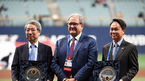 [OSEN=고척, 이대선 기자] 7일 오후 서울 고척스카이돔에서 '2019 세계야구소프트볼연맹(WBSC) 프리미어12' 예선 C조 대한민국과 캐나다의 경기가 열렸다.경기에 앞서 프리미어12로부터 감사패를 받은 정운찬 KBO총재와 진옥동 신한은