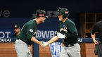 [OSEN=고척, 이대선 기자] 7일 오후 서울 고척스카이돔에서 '2019 세계야구소프트볼연맹(WBSC) 프리미어12' 예선 C조 호주와 쿠바 경기가 열렸다.6회초 호주 티모시 케넬리가 솔로 홈런을 치고 더그아웃에서 동료들의 축하를 받고 있