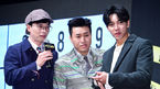 [OSEN=지형준 기자] 넷플릭스 '범인은 바로 너' 시즌2 제작발표회가 8일 오전 서울 압구정 CGV에서 열렸다.유재석, 김종민, 이승기가 간담회를 하며 문제를 풀고 있다. /jpnews@osen.co.kr