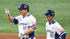 [OSEN=고척, 곽영래 기자] 8일 오후 서울 고척스카이돔에서 '2019 세계야구소프트볼연맹(WBSC) 프리미어12' 예선 C조 대한민국과 쿠바의 경기가 열렸다.5회말 2사 2루 한국 선수들이 김현수의 안타에 세레머니를 하고 있다. /youngrae@osen