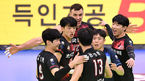 [OSEN=수원, 이대선 기자] 8일 오후 수원체육관에서 도드람 2019-2020 V-리그 한국전력과 현대캐피탈의 경기가 열렸다.2세트 한국전력 선수들이 득점에 환호하고 있다. /sunday@osen.co.kr
