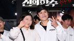 [OSEN=이대선 기자] 9일 오후 서울 성동구 CGV 왕십리 영화 ‘신의 한 수: 귀수편’ (감독 리건) 무대인사가 진행됐다.배우 원현준이 관객과 알까기를 하고 있다. /sunday@osen.co.kr