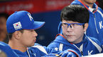 [OSEN=지바(일본), 곽영래 기자] 김경문 감독이 이끄는 야구 대표팀이 10일 오후 일본 지바현 ZOZO마린 스타디움에서 훈련을 진행했다.함덕주, 이승호, 문경찬이 훈련을 마치고 더그아웃으로 들어가고 있다. /youngrae@osen.co.kr