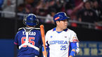 [OSEN=지바(일본), 곽영래 기자] 12일 오후 일본 지바현 ZOZO마린 스타디움에서 '2019 세계야구소프트볼연맹(WBSC) 프리미어12' 슈퍼라운드 한국과 대만의 경기가 열렸다.5회말 1사 1루에서 한국 김하성의 삼진 때 1루주자 박민우가 도루
