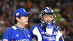 [OSEN=도쿄(일본), 곽영래 기자] 17일 오후 일본 도쿄돔에서 '2019 세계야구소프트볼연맹(WBSC) 프리미어12' 결승전 한국과 일본의 경기가 열렸다.1회말 이닝을 마친 양현종과 양의지가 이야기를 나누고 있다. /youngrae@osen.co.kr