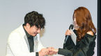 [OSEN=박준형 기자] 19일 서울 청담동 일지아트홀에서 듀오 캔의 새 싱글앨범 '쾌남' 쇼케이스가 진행됐다. 쇼케이스 종료 뒤 캔 배기성이 아내 이은비에게 결혼 2주년 기념 깜짝 이벤트를 하고 있다 ./ soul1014@osen.co.kr