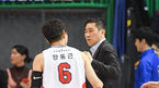[OSEN=잠실실내체,박준형 기자] 20일 오후 서울 잠실실내체육관에서 2019-2020 프로농구 서울 삼성과 울산 모비스의 경기가 진행됐다.2쿼터 종료직전 모비스 양동근이 버저비터 3점슛을 성공시킨뒤 삼성 이상민 감독에게 인사를 하