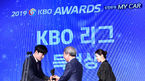 [OSEN=지형준 기자] 2019 KBO리그 시상식이 25일 오후 서울 인터컨티넨탈 코엑스 하모니볼룸에서 열렸다.NC 양의지가 KBO 타율상, 장타율상, 출루율상을 수상하고 있다. 시상자는 KBO 정운찬 총재. /jpnews@osen.co.kr