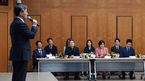[OSEN=조은정 기자] 27일 오후 서울 영등포구 KBS 신관 5층 국제 회의실에서 KBS ‘뉴스9’ 새 앵커 기자간담회가 진행됐다.KBS 앵커들이 양승동 사장의 인사말을 듣고 있다. /cej@osen.co.kr