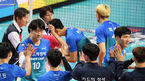 [OSEN=장충체, 민경훈 기자] 27일 오후 서울 장충체육관에서 ‘도드람 2019-2020 V-리그’ 남자부 우리카드와 삼성화재의 경기가 열렸다.2세트, 삼성화재 선수들이 공격에 성공한 후 기뻐하고 있다. /rumi@osen.co.kr