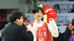 [OSEN=안양,박준형 기자] 1일 오후 경기도 안양시 안양실내체유관에서 2019~2020 현대모비스 프로농구' 안양 KGC 인삼공사와 인천 전자랜드의 경기가 진행됐다.하프타임때 정해인이 KGC인삼공 사인 된 기념구를 양희종에게 선물 받고