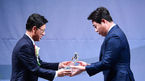 [OSEN=지형준 기자] 5일 오후 서울 논현동 임피리얼 팰리스 호텔에서 ‘2019 프로야구 스포츠서울 올해의 상’ 시상식이 열렸다.NC 양의지가 올해의 선수상을 수상하며 김종문 단장, 이동욱 감독의 축하를 받고 있다. /jpnews@os