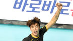 [OSEN=장충, 최규한 기자] 7일 오후 서울 장충체육관에서 ‘도드람 2019-2020 V리그’ 남자부 우리카드와 KB손해보험의 경기가 열렸다.1세트, KB손해보험 한국민이 득점에 기뻐하고 있다. /dreamer@osen.co.kr