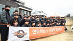 [OSEN=대전,박준형 기자]한화 이글스가 7일 대전 중구 충무로 한 동네에서 사랑 나눔 연탄배달 봉사활동을 진행했다.한화 선수단이 봉사활동에 앞서 기념사진을 찍고 있다. /soul1014@osen.co.kr