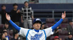 [OSEN=고척, 곽영래 기자] '2019 희망더하기 자선야구대회'가 15일 오후 서울 고척스카이돔에서 열렸다.4회말 양신팀 이영하가 솔로 홈런을 때린 뒤 세레머니를 하고 있다. /youngrae@osen.co.kr