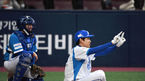 [OSEN=고척, 길준영 기자] 2017년 신인왕 이정후와 2018년 신인왕 강백호가 희망더하기 자선대회에서 맞붙었다.이정후와 강백호는 15일 서울 고척스카이돔에서 열린 ‘2019 희망더하기 자선야구대회’에서 5회말 첫 타석에서