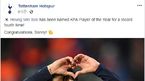 [OSEN=우충원 기자] "축하해 쏘니".대한축구협회는 19일 오후 서울 웨스틴조선호텔서 2019 KFA 시상식을 열고 소속팀과 대표팀에서 최고의 기량을 선보인 손흥민과 지소연에게 남녀 올해의 선수상을 수여했다.손흥민은 총 20