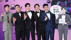 [OSEN=민경훈 기자] 21일 오후 서울 영등포구 여의도 KBS 본관 로비에서 진행된 '2019 KBS 연예대상' 포토월 행사 진행됐다.라비, 문세윤, 김선호, 연정훈, 김종민이 포토월로 입장하며 포즈를 취하고 있다./ rumi@osen.co.kr