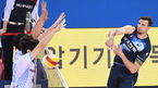 [OSEN=계양, 곽영래 기자] 22일 오후 인천 계양체육관에서 '도드람 2019-2020 V-리그' 대한항공과 한국전력의 경기가 열렸다.2세트 대한항공 진상헌이 블로킹 득점올 올린 뒤 기뻐하고 있다. /youngrae@osen.co.kr