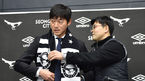 [OSEN=성남, 조은정 기자] 26일 오후 경기 성남시 탄천종합운동장에서 성남FC 김남일 신임감독 취임 기자회견이 열렸다.김남일 감독이 관계자에게 성남 FC 머플러를 건네 받고 있다. /cej@osen.co.kr