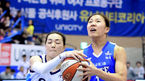 [OSEN=아산, 지형준 기자] 26일 오후 아산이순신체육관에서 ‘하나원큐 2019-2020 여자프로농구’ 아산 우리은행과 인천 신한은행의 경기가 열렸다.4쿼터 우리은행 박지현이 신한은행 한채진에 볼을 빼앗기고 있다. /jpnews@osen.c