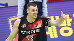 [OSEN=수원,박준형 기자] 17일 경기도 수원시 수원실내체육관에서 2019-2020 프로배구 V리그 남자부 수원 한국전력과 대전 삼성화재의 경기가 진행됐다.2세트 승리한 수원 한국전력 가빈이 미소 짓고 있다. / soul1014@osen.co.kr