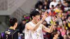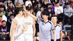 [OSEN=인천, 이대선 기자] 19일 오후 인천삼산월드체육관에서 ‘2019-2020 현대모비스 프로농구 올스타전’이 열렸다.극적으로 3점슛 콘테스트에서 우승한 최준용이 관중석에 앉아 세리니를 펼치고 있다. /sunday@osen.co.kr