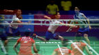 [OSEN=방콕(태국) 곽영래 기자] 25일 태국 방콕 후아막 실내체육관에서 '2020 세계배드민턴연맹(BWF) 월드투어 300 태국 마스터스' 여자 복식 준결승이 열렸다.정경은-백하나가 장예나-김혜린과 경기를 치르고 있다. /youngrae@osen.co.kr