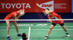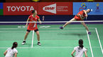 [OSEN=방콕(태국) 곽영래 기자] 25일 태국 방콕 후아막 실내체육관에서 '2020 세계배드민턴연맹(BWF) 월드투어 300 태국 마스터스' 여자 복식 준결승이 열렸다.장예나-김혜린이 경기를 치르고 있다. /youngrae@osen.co.kr