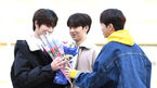 [OSEN=최규한 기자] 그룹 W프로젝트 주창욱이 7일 오전 서울 마포구 경성고등학교 졸업식을 앞두고 팬들과 취재진을 향해 인사했다.주창욱의 졸업을 축하하기 위해 참석한 황윤성과 이협이 꽃을 전하고 있다. /dreamer@osen.co.kr