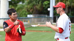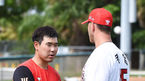 [OSEN=베로비치(미국 플로리다주),박준형 기자] SK 와이번스가 20일(한국시간) 미국 플로리다 베로비치 재키 로빈슨 트레이닝 컴플렉스에서 2020 스프링캠프 훈련을 가졌다.SK 최상덕 투수 코치가 킹엄광 이야기를 나누고 있다. / soul