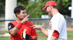 [OSEN=베로비치(미국 플로리다주),박준형 기자] SK 와이번스가 20일(한국시간) 미국 플로리다 베로비치 재키 로빈슨 트레이닝 컴플렉스에서 2020 스프링캠프 훈련을 가졌다.SK 이재원 포수가 킹엄과 악수를 나누고 있다. / soul1014@osen