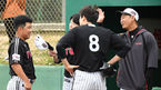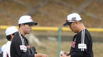 [OSEN=오키나와(일본) 곽영래 기자] LG 트윈스가 27일 일본 오키나와 구시가와구장에서 2차 전지훈련을 진행했다.고우석, 송은범이 이야기를 나누고 있다. /youngrae@osen.co.kr