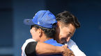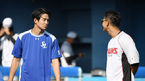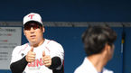 [OSEN=오키나와(일본), 곽영래 기자]29일 오후 일본 오키나와 온나 아카마 볼파크에서 삼성 라이온즈와 LG 트윈스가 연습경기를 진행했다.삼성 김용달 코치와 LG 박용택이 인사를 나누고 있다. /youngrae@osen.co.kr