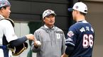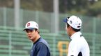 [OSEN=미야자키(일본), 이대선 기자] 1일 (한국시간) 일본 미야자키 소켄구장에서 두산 베어스의 스프링캠프가 진행됐다.두산 김재환이 훈련을 마치고 배영수 코치와 이야기를 나누고 있다. /sunday@osen.co.kr
