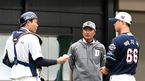 [OSEN=미야자키(일본), 이대선 기자] 1일 (한국시간) 일본 미야자키 소켄구장에서 두산 베어스의 스프링캠프가 진행됐다.두산 김원형 코치가 박종기를 지도하고 있다. /sunday@osen.co.kr