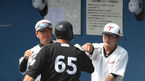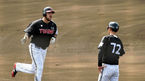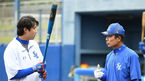 [OSEN=오키나와(일본), 곽영래 기자] 4일 오후 일본 오키나와 온나 아카마 볼파크에서 삼성 라이온즈와 LG 트윈스가 연습경기를 진행했다.LG 류중일 감독이 홈런을 때려낸 라모스와 주먹을 맞대고 있다. /youngrae@osen.co.kr