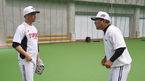 [OSEN=오키나와(일본) 곽영래 기자] LG 트윈스가 5일 일본 오키나와 구시가와구장 실내훈련장에서 훈련을 진행했다.김호 코치가 전민수의 외야수비를 지도하고 있다. /youngrae@osen.co.kr