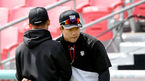[OSEN=수원, 김성락 기자] 13일 오후 수원 케이티위즈파크에서 2020 프로야구 정규시즌 개막을 앞둔 KT 위즈가 그라운드 훈련시간을 가졌다.KT 강백호와 최만호 코치가 인사를 하고 있다./ksl0919@osen.co.kr