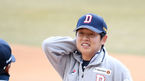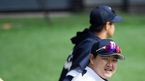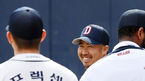[OSEN=잠실, 민경훈 기자] 15일 오후 서울 잠실구장에서 2020 프로야구 정규시즌 개막을 앞둔 두산 베어스가 두산 베어스가 자체 훈련을 진행했다.두산 유희관이 프렉센(플렉센)을 바라보며 미소짓고 있다./ rumi@osen.co.kr