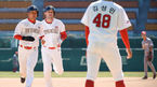 [OSEN=인천,박준형 기자] 22일 오후 인천 SK행복드림구장에서 SK 와이번스 선수단의 자체 청백전이 진행됐다.6회말 로맥이 동점 2점 홈런을 날리고 1루 주자 최정과 함께 베이스를 돌고 있다. / soul1014@osen.co.kr