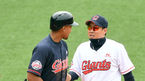[OSEN=김해, 최규한 기자] 1일 오후 경상남도 김해 상동구장에서 롯데 자이언츠의 자체 청백전 경기가 열렸다.이날 경기는 원정팀이 6-1로 승리를 거뒀다.롯데 안치홍과 마차도가 2루에서 대화를 나누고 있다. / dreamer@osen.co.kr