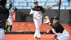 [OSEN=김해, 최규한 기자] 1일 오후 경상남도 김해 상동구장에서 롯데 자이언츠의 자체 청백전 경기가 열렸다.이날 경기는 원정팀이 6-1로 승리를 거뒀다.롯데 포수 지성준이 마스크를 고쳐쓰고 있다. / dreamer@osen.co.kr