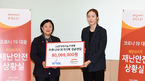 [OSEN=이대선 기자] 1일 오후 서울 마포구 희망브리지 전국재해구호협회 희망브리지홀에서 ‘WKBL 선수단 코로나19 극복을 위한 기부금 전달식’이 열렸다.김정희 희망브리지 사무총장, 우리은행 박혜진이 포즈를 취하고 있