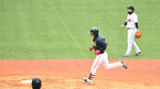 [OSEN=김해, 최규한 기자] 1일 오후 경상남도 김해 상동구장에서 롯데 자이언츠의 자체 청백전 경기가 열렸다.3회초 2사 2루 상황 롯데 김민수가 노경은을 상대로 달아나는 좌월 투런포를 날리고 그라운드를 돌고 있다. / dreamer@osen