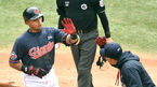 [OSEN=김해, 최규한 기자] 1일 오후 경상남도 김해 상동구장에서 롯데 자이언츠의 자체 청백전 경기가 열렸다.롯데 원정팀 유격수 마차도가 중요 부위에 타구를 맞은 뒤 괜찮다는 제스처를 취하고 있다. / dreamer@osen.co.kr