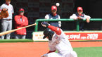[OSEN=인천 , 곽영래 기자] SK 와이번스가 5일 오후 인천 SK행복드림구장에서 청백전을 가졌다.3회말 무사 수펙스팀 정현이 킹엄의 공을 피하려다 공이 배트에 맞아 번트 포수 앞 땅볼로 물러났다. /youngrae@osen.co.kr