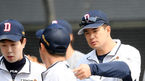 [OSEN=잠실, 민경훈 기자] 7일 오후 서울 잠실야구장에서 프로야구 두산 베어스의 그라운드 훈련이 진행됐다.두산 김재환이 훈련 중 정수빈과 얘기를 나누고 있다. /rumi@osen.co.kr